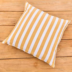 Polster in gelb und weiß gestreift; 100% Baumwolle; Bezug abnehmbar und waschbar; 60x60cm.