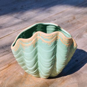 Muschelvase aus Porzellan; B19xT14xH16cm; Farbe: mint, beige; Made in Frankreich.