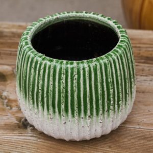 Steingut Blumentopf in Grün-, Beige- und Weißtönen. D14xH15cm.