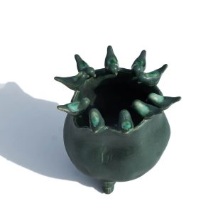 Blumentopf aus Steingut mit Vögel, grün; D21cmxH19,5cm.