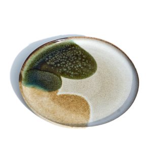 großer Teller aus Steingut, grün/natur; D28,5xH2cm.