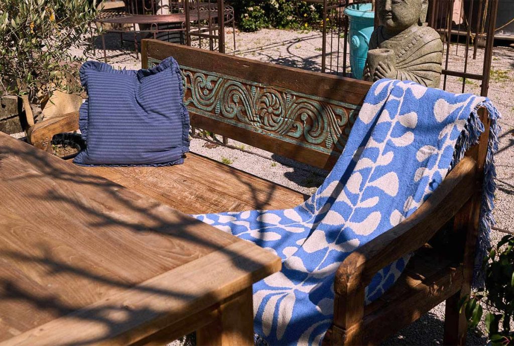 Decke aus recycelter Baumwolle, blau; Länge: 160cm, Breite: 130cm.
