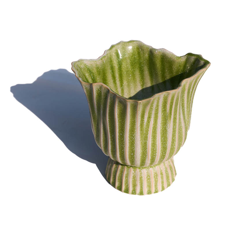 Steingut Blumentopf in Grün-, Beige- und Weißtönen. D20xH19cm.