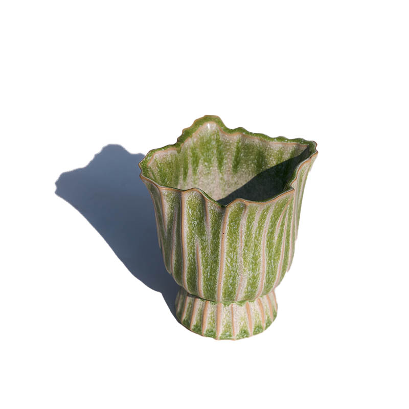 Steingut Blumentopf in Grün-, Beige- und Weißtönen. D14xH15cm.