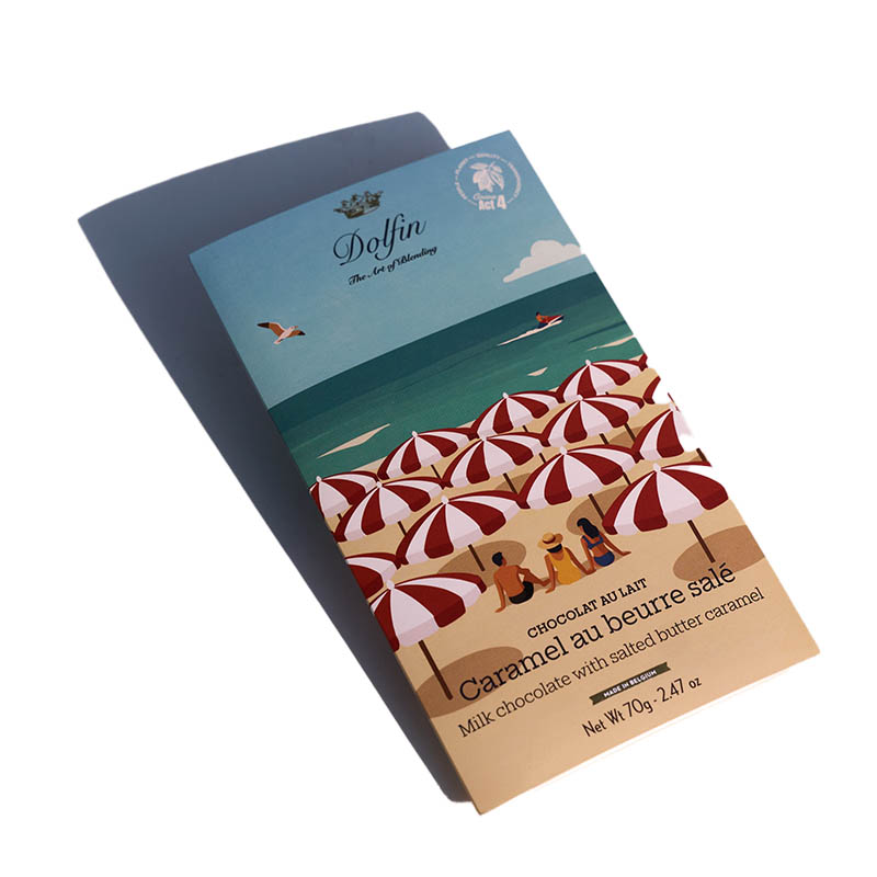 Vollmilchschokolade mit gesalzenem Butterkaramell. Herkunft: Belgien, 70g.