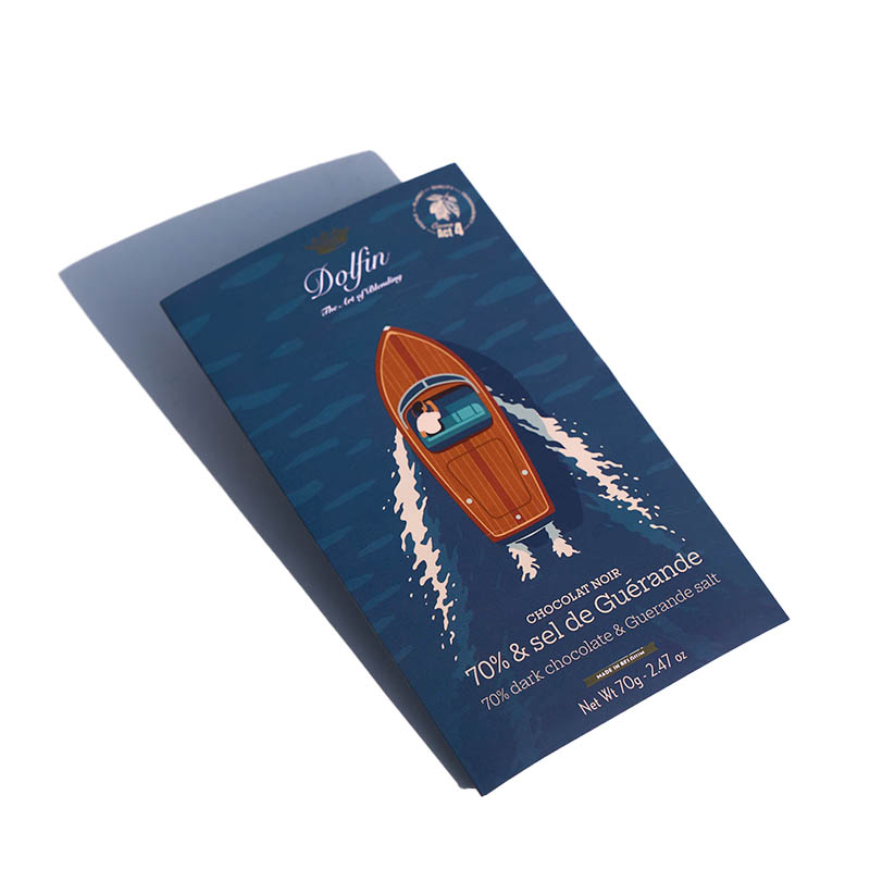 Dunkle Schokolade, 70%, und Guérande Salz. Herkunft: Belgien, 70g.
