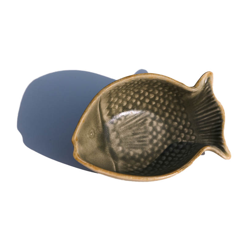 Fischschüssel aus Steinzeug, Grün, 14x10x5cm.