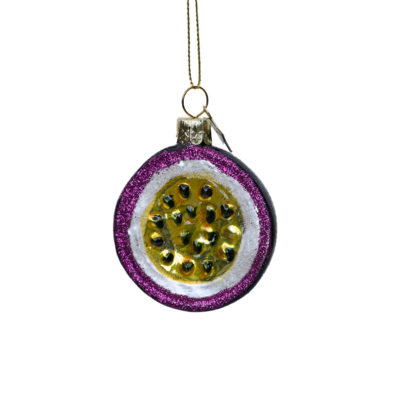 Passionsfrucht halbiert; violett mit gold und Glitzer, 7cm.