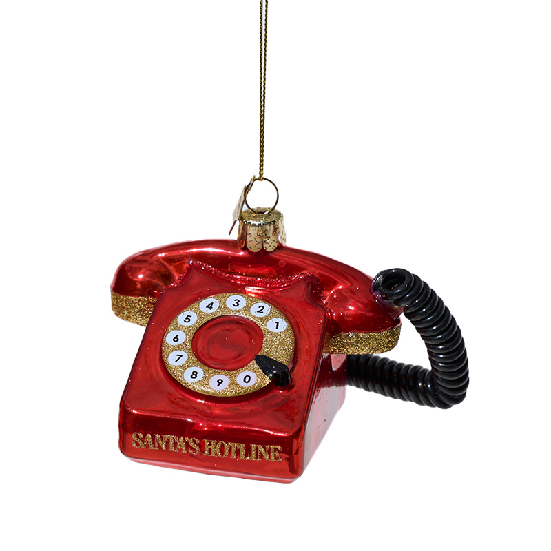 rotes Telefon “Santas Hotline” mit Wählscheibe und Kabel, 7cm.