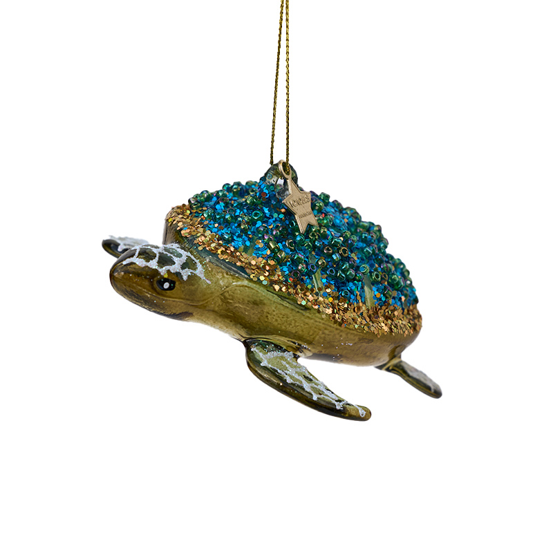 Schildkröte transparent mit blauen Perlen und Glitzer, 7cm.