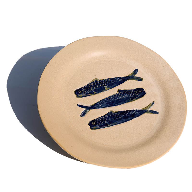 Steingutteller in Cremeweiß und Blau. Spülmaschinenfest. D27,5x3cm