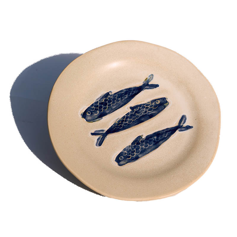 Steingutteller in Cremeweiß und Blau. Spülmaschinenfest. D21x2cm.